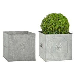 ESSCHERT DESIGN Bloembak Leeuw Vierkant – Metaal – Set Van 2 Stuks
