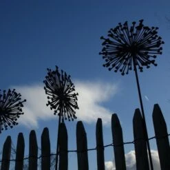 Deze mooie allium is een weergave van zo’n uitgebloeide zaaddoos, vervaardigd in speciaal gevormd en behandeld metaal met een roestige look. De unieke bloem blijft altijd even mooi en staat prachtig in de border of in een plantenbak op het terras. Met de bijgeleverde stang kan je de (platte) bloem eenvoudig in de grond prikken.