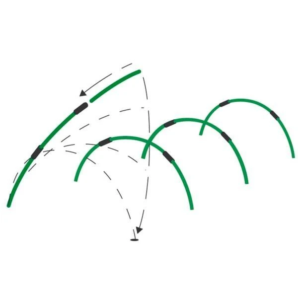 Set van 4 handige tunnelbogen in PVC. Je kan je planten hiermee beschermen tegen kou en tegen vogels naargelang je er een zeil of net overhangt.