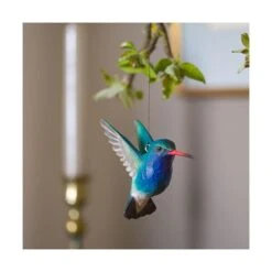 De authentieke, uit hout gesneden kolibries brengen de schoonheid van de natuur bij je thuis. Deze twee levensechte kolibries zijn handgemaakt en hebben elk een houding die typeert voor deze vogel. Hun kleurrijke verenkleed is geschilderd met milieuvriendelijke verf. Met het voorziene haakje kunnen ze makkelijk in het interieur worden opgehangen.
