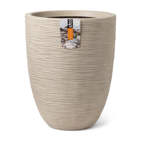 Zet jouw favoriete (kamer)plant in de spotlights met deze bijzondere bloempot van Capi. Waste is een nieuwe lijn van bloempotten die gemaakt zijn van 100% gerecycleerde materialen waaronder kurk, oude potten, restanten uit de productie en plastic afval uit de oceaan. Capi wil op die manier laten zien dat je met creatieve innovaties tot groene oplossingen kunt komen voor een maatschappelijk probleem. Het resultaat is een duurzame bloempot met een uniek design!