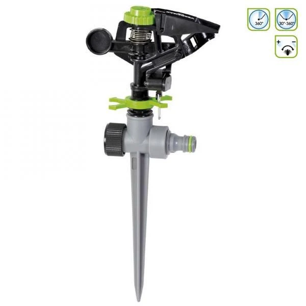 Mogelijkheid tot een cirkelvormige besproeiing van de tuin. De cirkelsproeier is volgens eigen wens in te stellen / te richten zodat slechts een deel van de cirkel wordt besproeid om enkel bepaalde tuindelen te bewateren (van 30 tot 360°).
