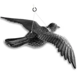 De duivenverjager is gemaakt uit weerbestendige kunststof en is voorzien van een ophangtouwtje met een ophangring.