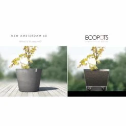 Op zoek naar een grote bloempot die je gemakkelijk kan verplaatsen? Wat dacht je van onze Amsterdam Wheels? De klassieke ECOPOTS bestseller, maar dan met een set goede wielen, zodat je pot en plant kan verplaatsen waar je maar wilt en zonder dat je de wielen ziet. Ideaal voor jouw terras, lobby of kantoorruimte.De pot is gemaakt van naadloos duurzaam kunststof en is makkelijk te verplaatsen door de stevige wielen die netjes weggewerkt zitten achter de potrand!