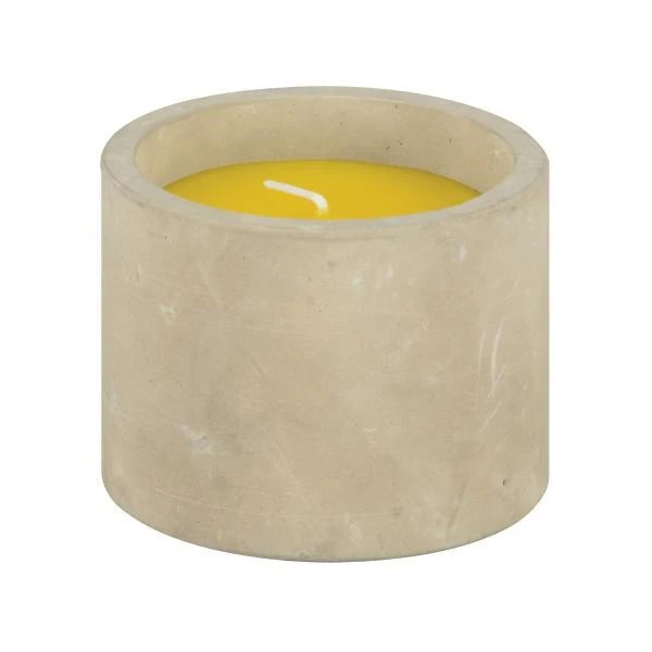 Deze gele kaars heeft een leuke betonnen houder die nadien nog gebruikt kan worden als theelichthouder of als kleine bloempot.