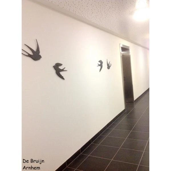 De muurdecoratie is gemaakt van gietijzer en werd als afwerking zwart gepoedercoat. Met de voorziene openingen kan je de vogels makkelijk aan de muur bevestigen.