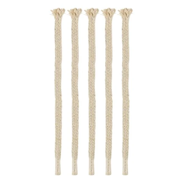 Set van vijf vervanglonten voor de Bamboe tuinfakkel. Elke lont is vervaardigd uit katoen die bij het aansteken langzaamaan opbrandt. Dankzij het beschermend omhulsel rond de lont, blijft de vlam mooi branden. Handig op winderige dagen.