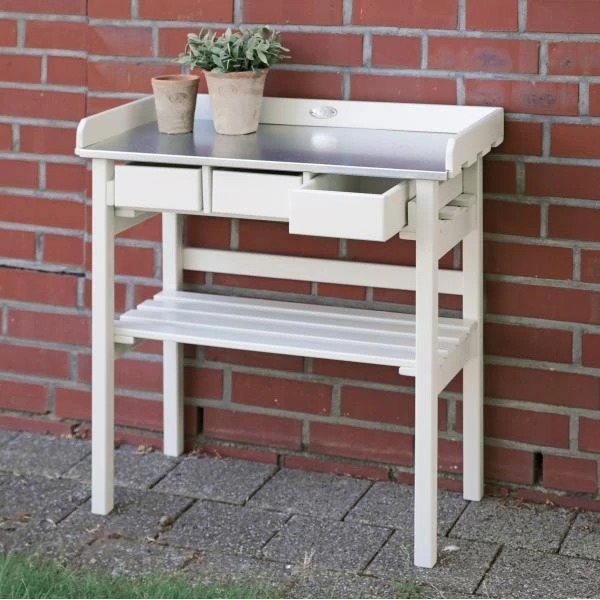 Met deze handige tuinwerktafel met drie lades kunt u gemakkelijk en snel bloemen, planten en kruiden verzorgen zonder dat u hiervoor op uw hurken of knieën op de grond hoeft te zitten. Deze tuinwerktafel heeft een ruim verzinkt werkblad, zodat u deze makkelijk schoon kunt houden.