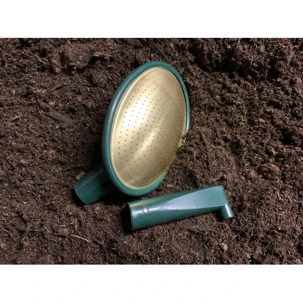 De groene kunststof gieter wordt geleverd met een fijne koperen broes en een handige naar beneden gerichte gietkop om rechtstreeks potten of schaaltjes te bewateren. De verhoogde vulopening zorgt ervoor dat het water er niet uit kan klotsen. De draagbeugel zit ook niet boven de vulopening zodat het vullen onder de kraan een heel stuk makkelijker gaat.