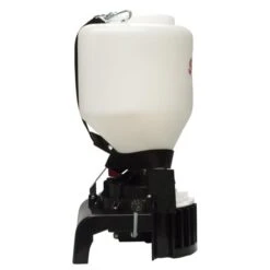 De strooier wordt met een verstelbare riem voor het lichaam gedragen. De brede opening vergemakkelijkt het vullen en is afgesloten door een schroefdeksel om de gerbuiker te beschermen tegen schadelijk stof.