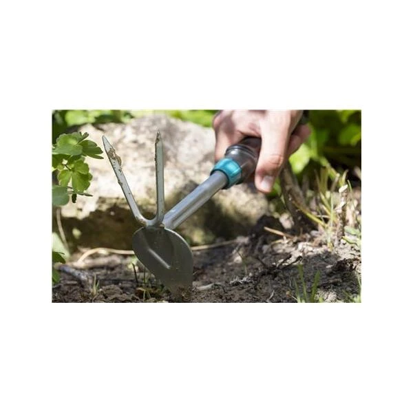 De GARDENA handhark is een ideaal gereedschap voor het losmaken, beluchten en wieden van de bodem. De ergonomische handgreep met zacht component past perfect in de hand en de hoek aan het einde voorkomt wegglijden.