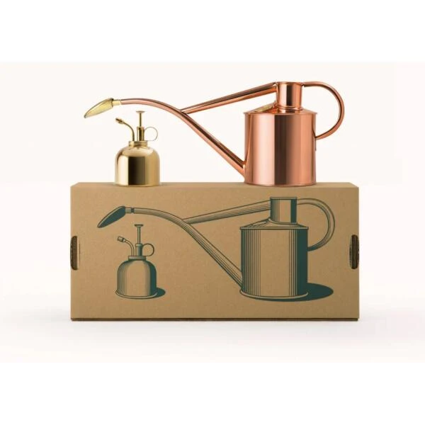 Haws verwent elke tuinliefhebber met de creatie van deze prachtige giftbox. Deze box bevat een metalen Haws gieter met een inhoud van 1 liter en een geelkoperen broes. De gieter kan zowel binnen als buiten worden gebruikt en wordt vergezeld door een authentieke geelkoperen Haws vernevelaar (300 ml) voor het fijn besproeien van zaailingen, kamerplanten en orchideeën.