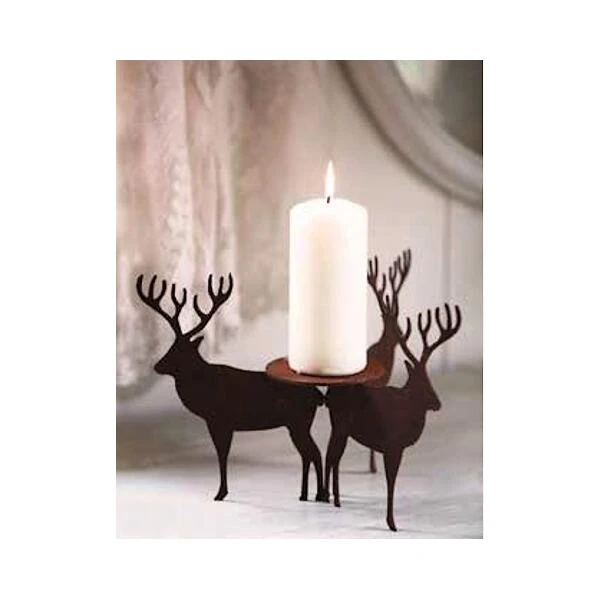 Een exclusieve kaarsenhouder bestaande uit drie herten die samen een plateau dragen waarop een kaars kan geplaatst worden.