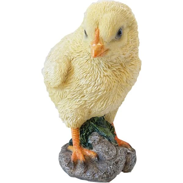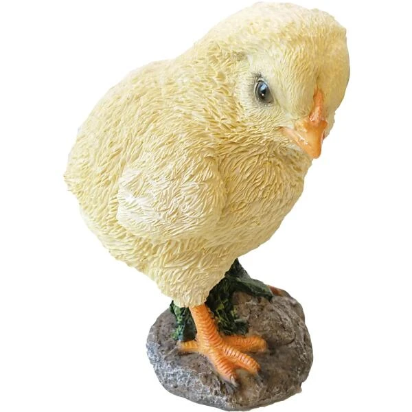 Een prachtig beeldje van een donzig lief klein kuikentje. Deze levensechte weergave is vervaardigd uit polyresin, een duurzame kunsthars en kan zowel binnen als buiten worden geplaatst.