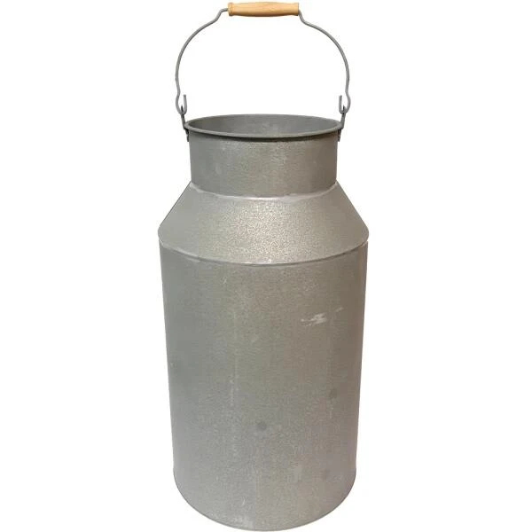 De melkbus is uit zink vervaardigd en heeft een oude vintage look. De beugel is voorzien van een houten handvat.