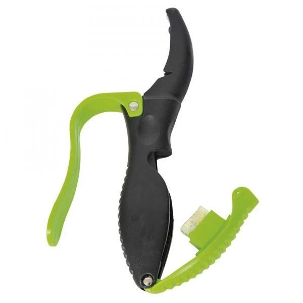 Messenslijper uitgerust met twee slijpsystemen. Eén op de top voor korte messen en een lateraal systeem voor lange messen. In het handvat van deze handige tool zit een borsteltje met olie ingewerkt voor de messen in te vetten. De tool is uitgerust met een groene kunststof handbeschermer.