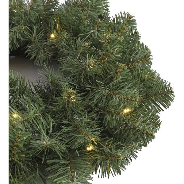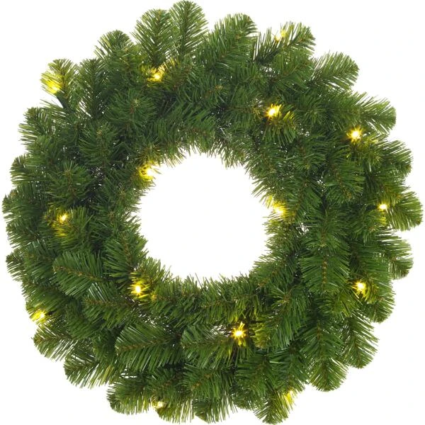 De krans is voorzien van led lampjes die ’s avonds een warme gloed geven en voor extra kerstsfeer zorgen. De verlichting werkt op batterijen zodat je niet afhankelijk bent van een stopcontact. De takken zijn ook mooi stevig waardoor de krans naar eigen wens verder kan gedecoreerd worden.