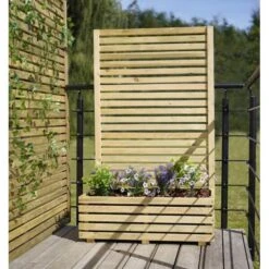 Deze bak heeft een leuke opbouw uit balkjes met een dikte van 25 mm en vomt de perfecte afboording van jouw balkon of terras. Groenvoorziening en privacy in één klap. Deze bak is geschikt voor planten met een maximale groeihoogte van 70 cm.