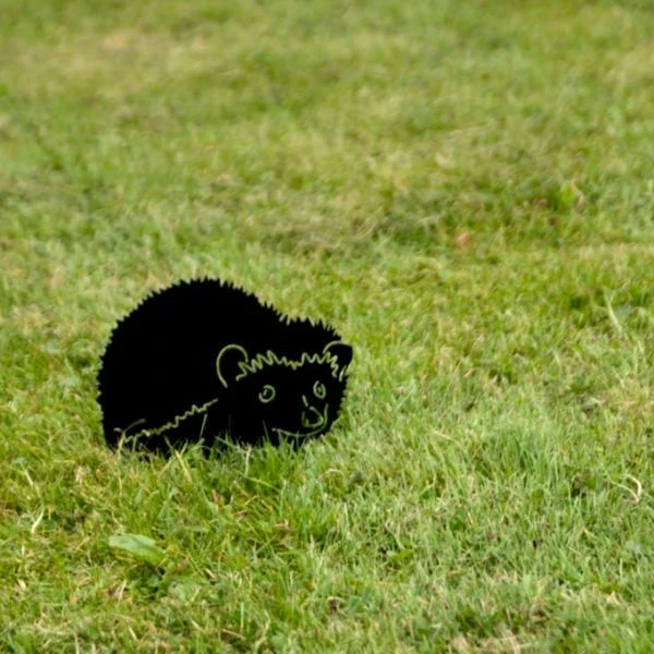 Je kan het silhouet van de egel ergens in de tuin vastschroeven dankzij de voorziene gaten of je kan het gewoon ergens neerzetten dankzij de bijgeleverde zwarte metalen voetclips.
