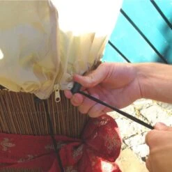 De beschermhoes is voorzien van een rits waardoor je de planten snel kan inpakken, controleren en terug kan uitpakken. Met de voorziene trekkoord kan je de hoes stevig rond de pot aanspannen. Dankzij de rits en de trekkoorden zit de thermohoes als gegoten rond jouw planten zodat hevige wind er, bij het correct aanbrengen, praktisch geen vat op kan krijgen. Bij gewone vliesdoeken is dit tot ieders frustratie vaak wel het geval.