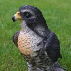 Deze beeld van een rustende valk op een boomstronk lijkt de de omgeving gade te slaan. Bij dit beeld zijn alle details heel mooi weergegeven en lijkt de roofvogel net echt. Het beeld is gemaakt uit polyresin, een duurzame kunsthars dat tegen heel wat weersinvloeden bestand is.