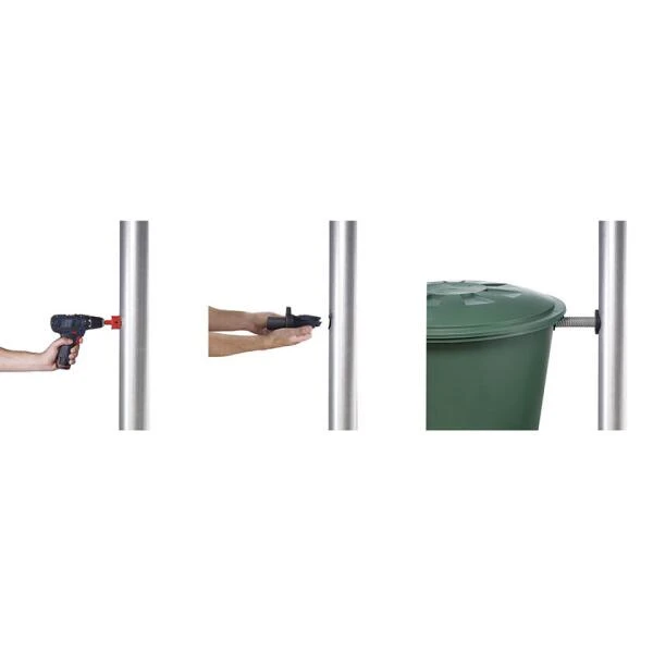 Met de bijgeleverde kroonboor, kan er in de afvoerbuis een opening worden voorzien zonder de regenpijp door te zagen. Bevestig de vulautomaat in de regenbuis en sluit aan op de regenton. Het element zet zich in de regenbuis open en vangt zo het regenwater op.