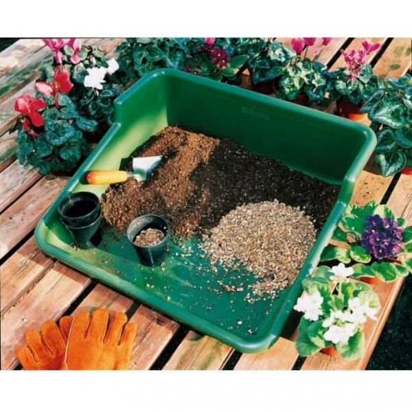 Deze stevige werktablet is ideaal om te gebruiken bij het verpotten, zaaien, scheuren,… en vele andere tuinklussen. Dit handig tuinmateriaal zorgt er voor dat de potgrond netjes in de teil blijft waardoor je achteraf niet alles hoeft op te kuisen. De grond beperkt zich netjes binnen de teil terwijl de lage voorzijde een gemakkelijke toegang biedt.