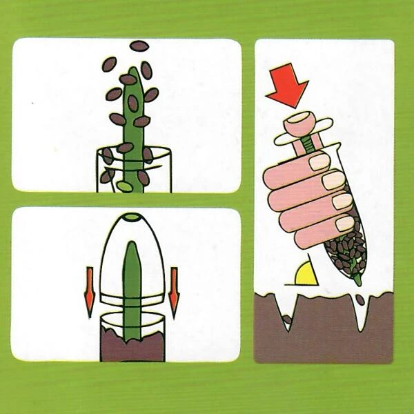 Een zeer nuttig en eenvoudig instrument voor het zaaien van kleine zaden. Dit precisie-zaaitoestel kan worden gebruikt om in de moestuin direct in voren te zaaien of voor het zaaien van zaden in bakjes, potjes,… binnenshuis.